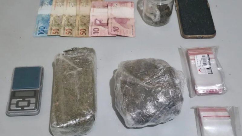 Entre os materiais apreendidos estão porções de maconha e cocaína, dinheiro em espécie, um telefone celular, embalagens utilizadas para fracionamento das drogas e uma balança de precisão. Um veículo que estaria sendo usado na atividade também foi recolhido.